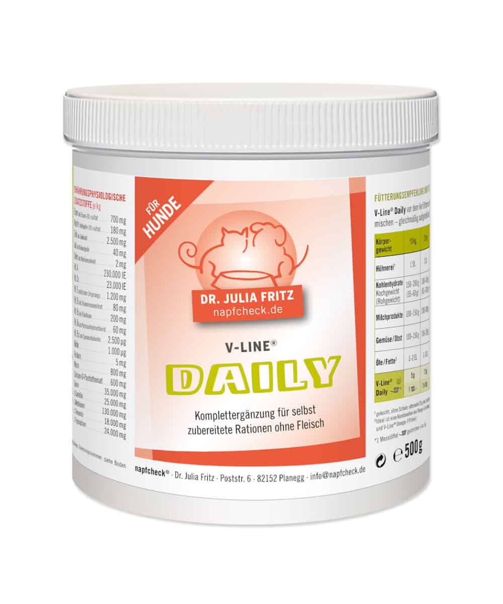 Hinweis: V-Line DAILY ist aufgrund des besonderen Nährstoffbedarfs nicht für Welpen und laktierende Hündinnen geeignet.