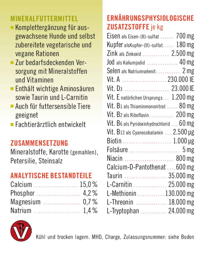 - Komplettergänzung für selbst zubereitete Rationen ohne Fleisch (vegetarisch – vegan)